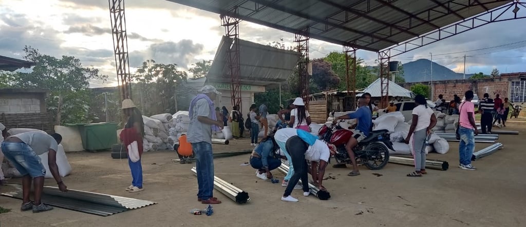Entrega materiales construcción (zinc, amarras, puntilla)
