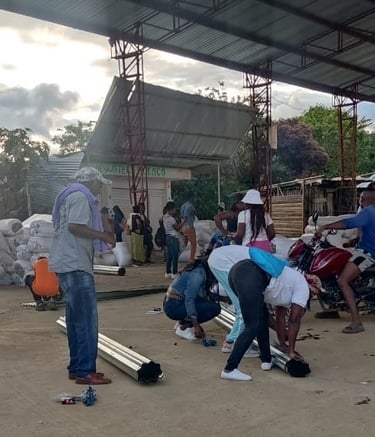 Participantes, recibiendo y transportando insumos
