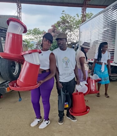 Entrega bebederos, comederos, herramientas (pala, palin)